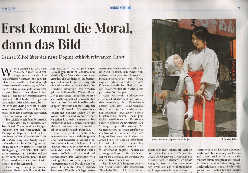 Kunstzeitung // Erst kommt die Moral, dann das Bild – Larissa Kikol über das neue Dogma ethisch relevanter Kunst.