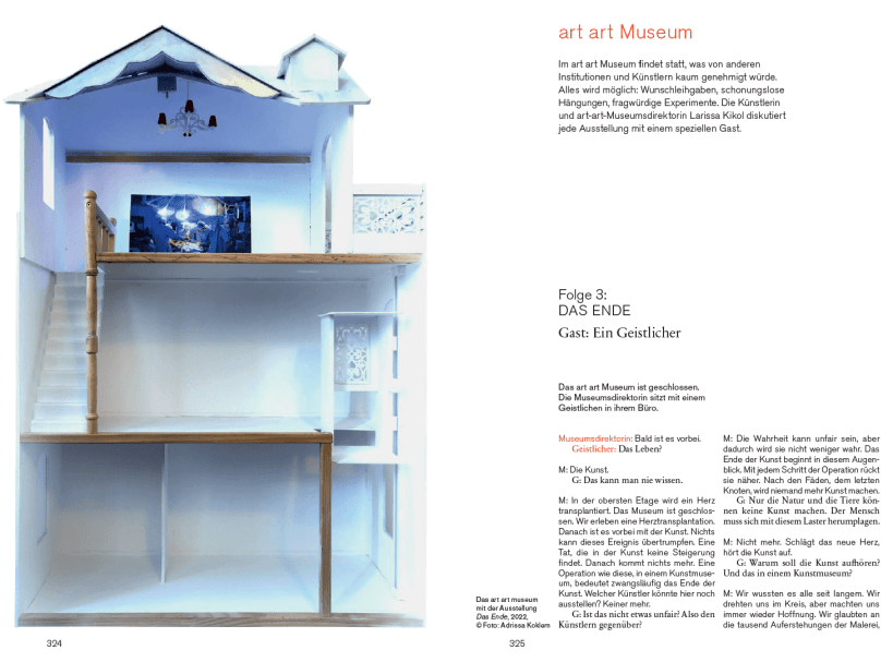 Im art art Museum findet statt, was von anderen Institutionen und Künstlern kaum genehmigt würde. Alles wird möglich: Wunschleihgaben, schonungslose Hängungen, fragwürdige Experimente. Die Künstlerin und art-art-Direktorin Larissa Kikol diskutiert jede Ausstellung mit einem speziellen Gast.