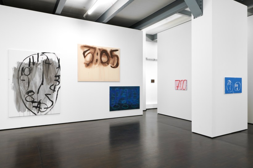 All works feature times of day, both in analog and digital form, as display and as dial. However, they were not painted by Clausen himself, but by assistants. Still, they look as if they were made by a single hand. The conceptual approach of planning and delegating tasks coincides with the freedom of gesture and the aesthetics of imperfection.