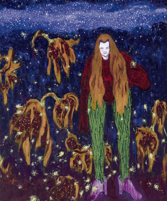 “In El Lahib’s nights, his figures are thrown back onto themselves. They feel, think, and hold their own with no initial sense of direction. The task of not losing yourself, but being completely at one with yourself, further intensifies the moment. There are also encounters, namely between the figures in these paintings and the observer. Some seek our gaze whilst others don’t. They stand in the way with their bodies, they challenge us or invite us, they draw us into the painting, or rather, into the night.” Dr Larissa Kikol.