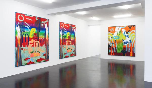 Ausstellungstext // Die Bodenheizung in der Wüste ist aufgedreht. Selbst die Hitze scheint zu schmelzen. Darin streckt sich ein Regenbogen