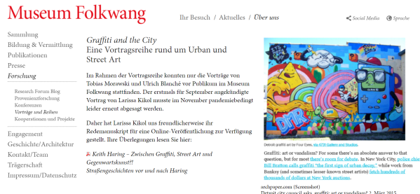 Museum Folkwang Essen / Paper/ Da mein Vortrag leider durch die Pandemie ausfallen musste, steht er jetzt als Paper auf