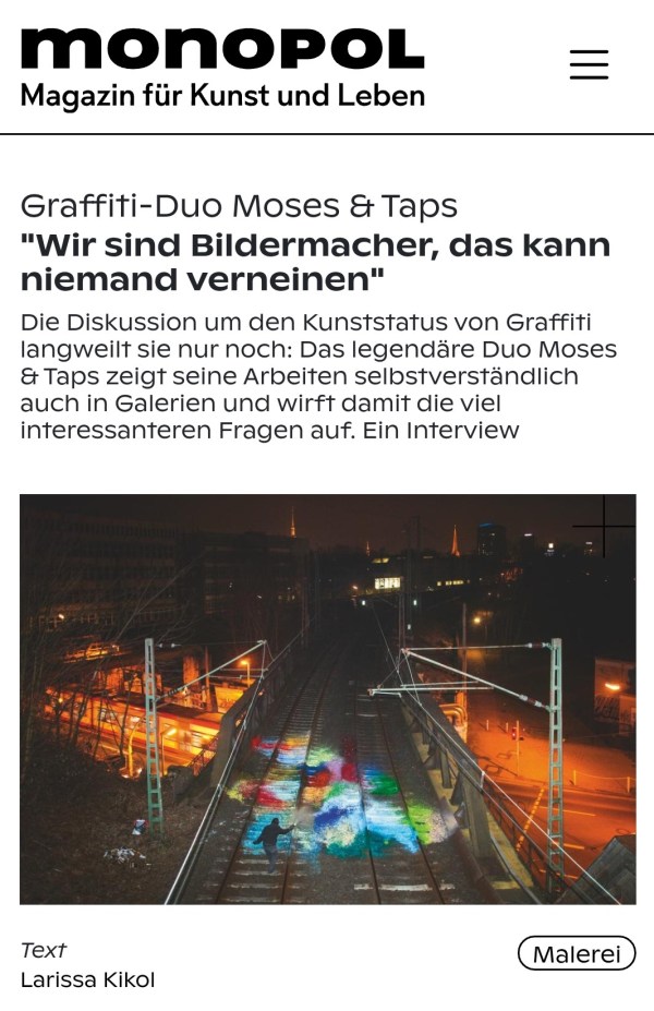 Monopol Magazin Online // Die Diskussion um den Kunststatus von Graffiti langweilt sie nur noch: Das legendäre Duo Moses &
