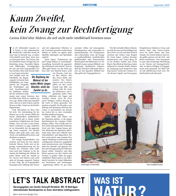 Kunstzeitung // Kaum Zweifel,kein Zwang zur Rechtfertigung Larissa Kikol über Malerei, die sich nicht mehr intellektuell beweisen muss Im 20.