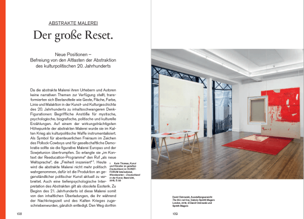 Kunstforum International // Band: Gegenwartsbefreiung Malerei / Einleitung: „Da die abstrakte Malerei ihren Urhebern und Autorenkeine narrativen Themen zur Verfügung