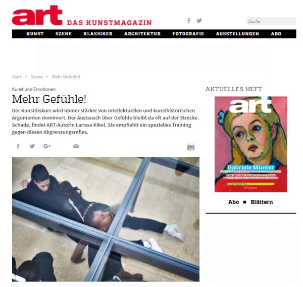 Artikel Debatte, art das Kunstmagazin online// Wann hat Sie das letzte Mal ein Kunstwerk emotional berührt? Und mit wem haben