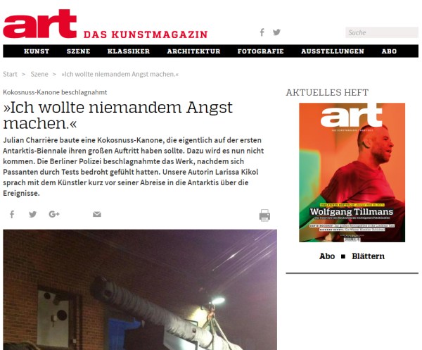 Interview mit Julian Charriere // Einen Abend vor seiner Abreise in die Antarktis erzählte er mir, was mit seiner Kokosnusskanonenkunst