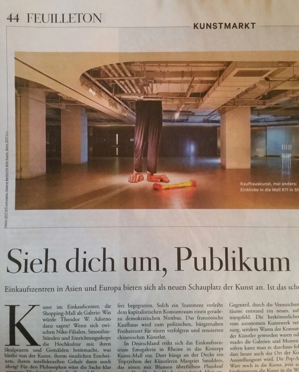 Artikel Die Zeit // Kunst im Einkaufscenter, Kunstwerke zwischen Konsumwaren, die Shopping Mall als Brecheisen gegen den White Cube. Manch