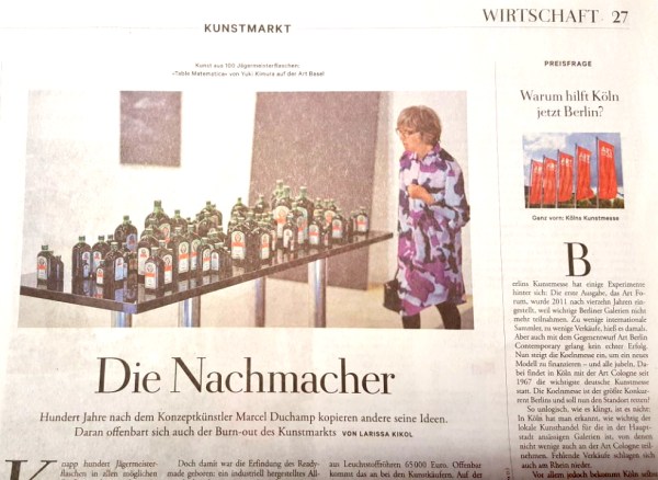 Artikel Die Zeit// Der Burn-out des Kunstmarkts zeigt sich an der langweiligen Anhäufung von Readymades. Duchamps Idee muss als Heilmittel