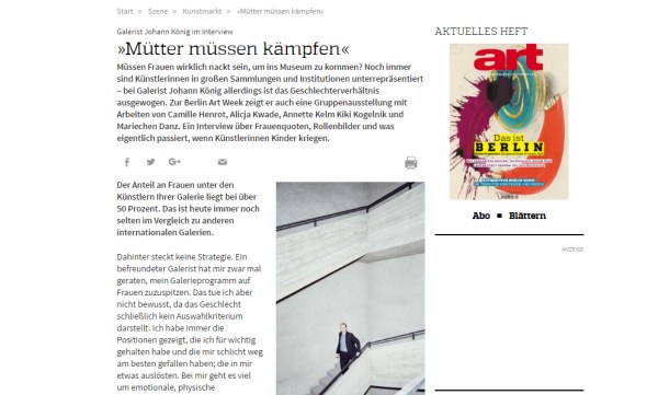 Interview Johann König // Müssen Frauen wirklich nackt sein, um ins Museum zu kommen? Noch immer sind Künstlerinnen in großen