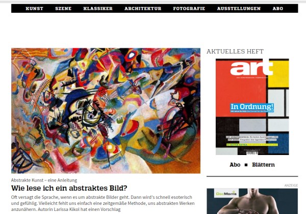 ARTIKEL art das Kunstmagazin Online// Viele Kritiker bekommen heute Magenschmerzen, wenn sie gebeten werden einen Text über abstrakte Bilder zu