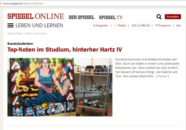 Artikel Spiegel// Wie leben (junge) Künstler nach dem Kunststudium? Fleiß und Qualität entscheiden nicht immer über Karriere. Ein Diplom einer renommierten Kunsthochschule