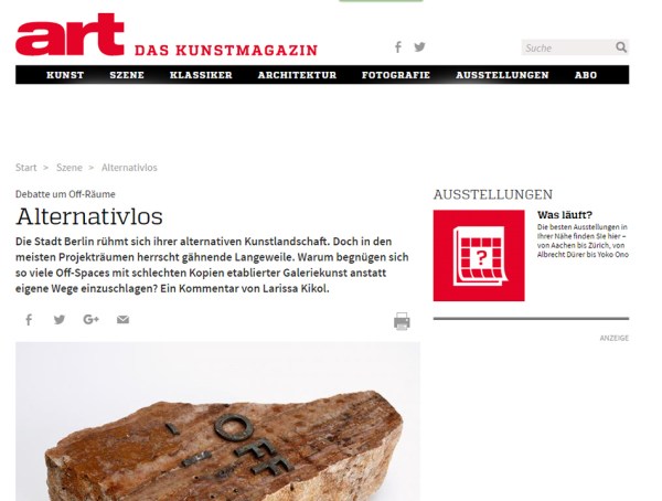 Alternativlos art das Kunstmagazin Online / Die Stadt Berlin rühmt sich ihrer alternativen Kunstlandschaft. Doch in den meisten Projekträumen herrscht gähnende