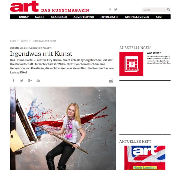 art das Kunstmagazin Online / Irgendwas mit Kunst: Das Online-Portal »Creative City Berlin« feiert sich als synergetischen Hort der Kreativwirtschaft. Tatsächlich
