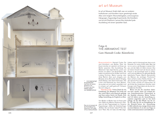 Kunstforum International / Gast: Hannah Cooke Museumsdirektorin: Hannah Cooke, Sie sind Künstlerin und Mutter. Über die Kunst möchte ich natürlich