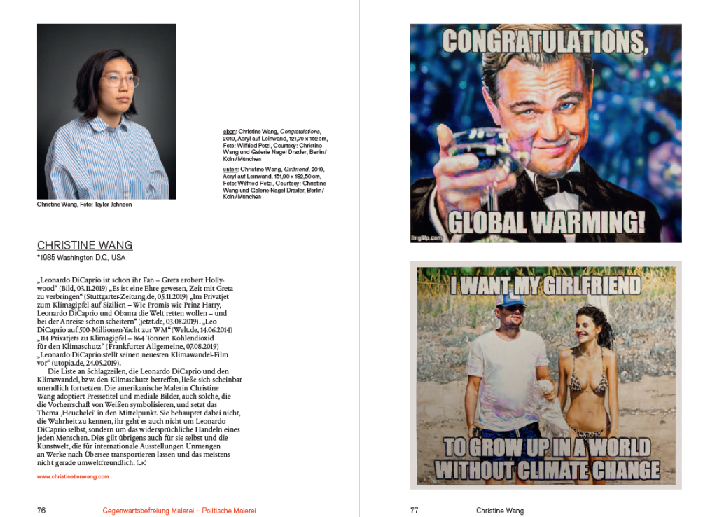 „Redner, Statements und Gesichter – Christine Wang, Tatjana Doll, Vincent Valdez, Caroline Walker“ in: Gegenwartsbefreiung Malerei – Tendenzen im 21. Jahrhundert, Kunstforum International, Band 268, 2020