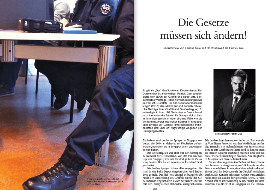 „Die Gesetze müssen sich ändern“ Interview mit Dr. Patrick Gau, in: Kunstforum International, Graffiti Now, Band 260, 2019
