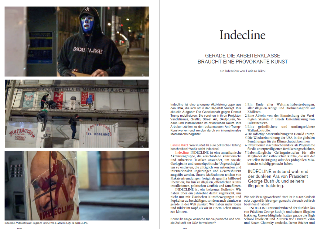 Interview mit Indecline „Gerade die Arbeiterklasse braucht eine provokante Kunst“ Kunstforum International, Band 254: „Politik, Ethik, Kunst“, 2018