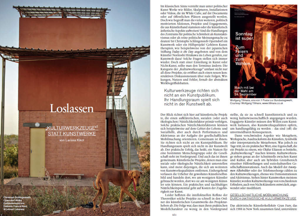 „Loslassen – Kulturwerkzeuge statt Kunstwerke“ Kunstforum International, Band 254: „Politik, Ethik, Kunst“, 2018