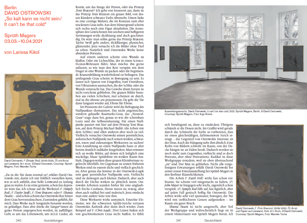 Ausstellung, „David Ostrowski – So kalt kann es nicht sein“ Sprüth Magers Galerie, Kunstforum International, Band 274, 2021