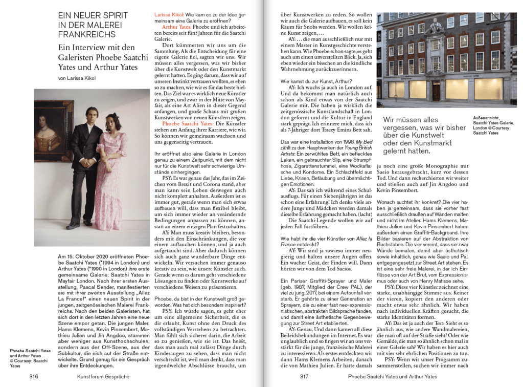 Interview „Ein neuer Spirit in der Malerei Frankreichs – Phoebe Saatchi Yates und Arthur Yates, Kunstforum International, Band 275, 2021