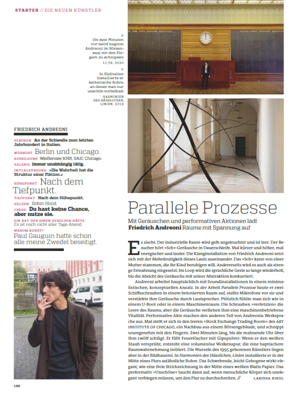 art das Kunstmagazin / Starter / „Es zischt. Der industrielle Raum wird gelb angeleuchtet und ist leer. Der Besucher hört