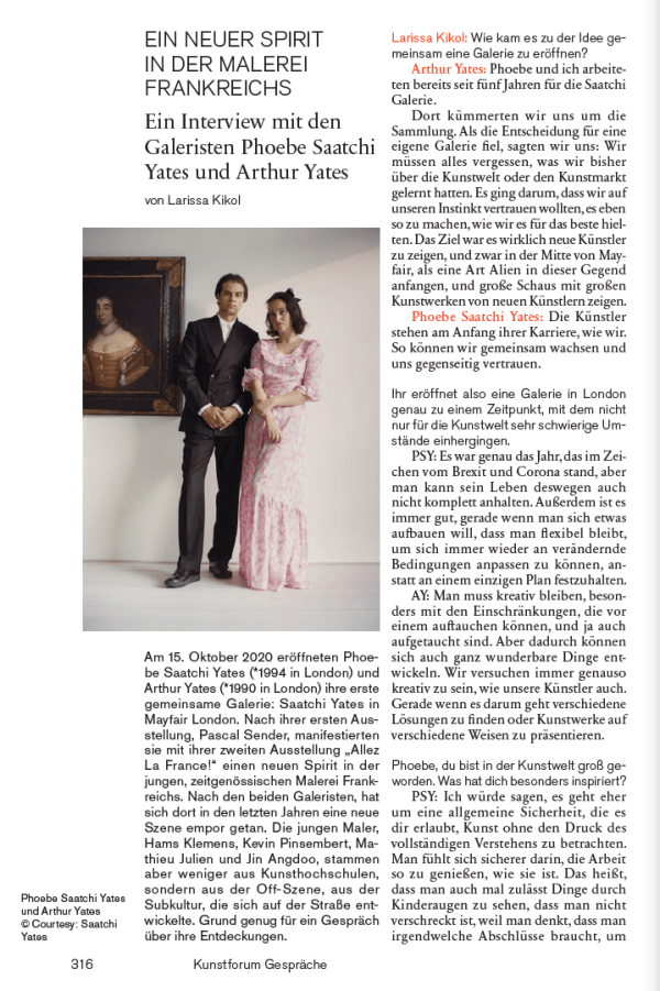 Kunstforum International / Phoebe Saatchi Yates und Arthur Yates / „Ein neuer Spirit in der Malerei Frankreichs“. Am 15. Oktober
